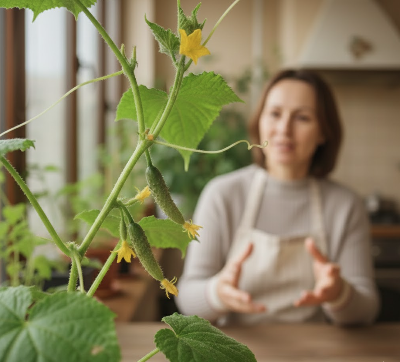 «Я перепробувала багато чого, але саме “Голілео” поводиться так, ніби створений для підвіконня: компактний кущ, а огірочків — як гірлянди», — усміхається господарка.