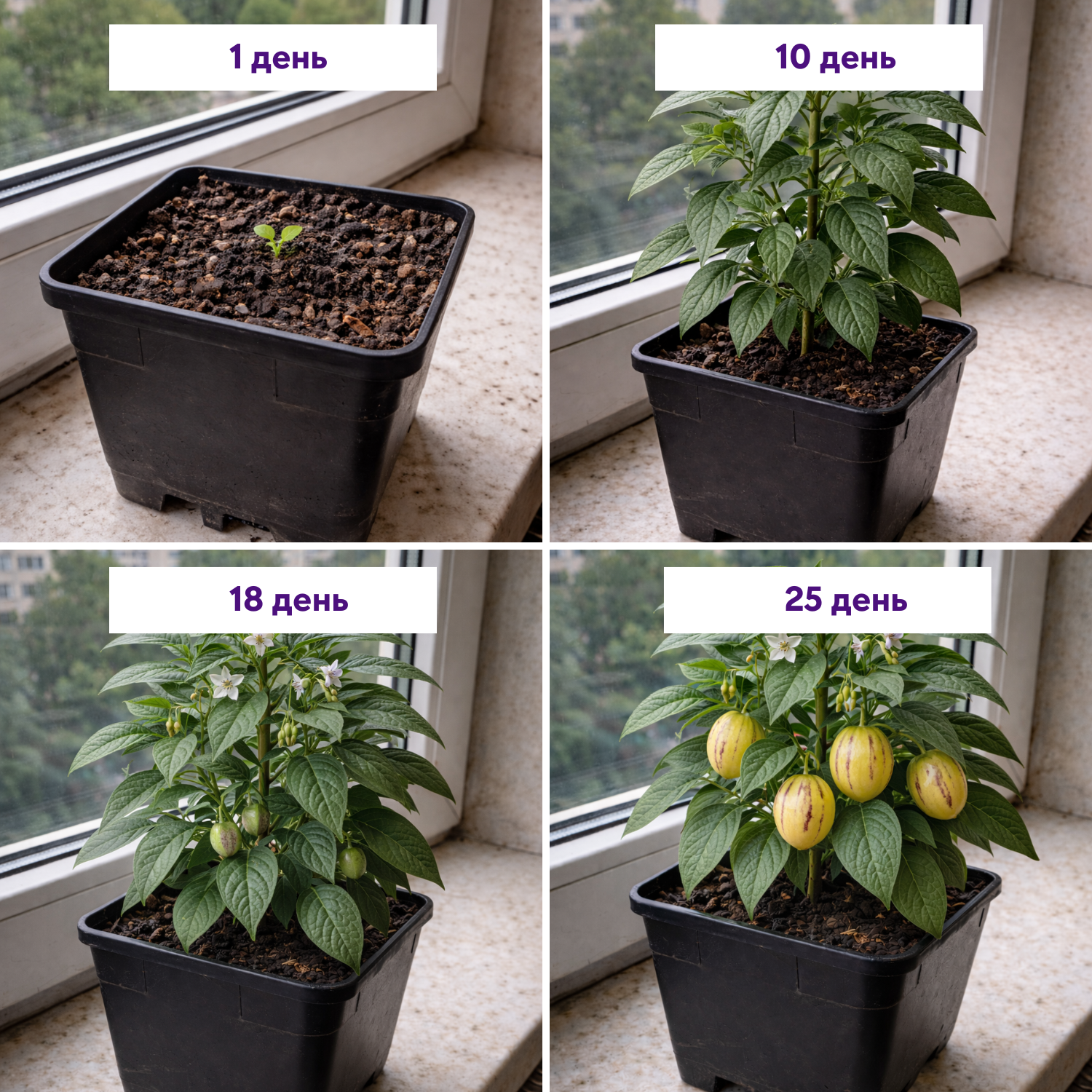 Брала через цікавість, думала — буде просто зелень. Але вже другий раз знімаю плоди. Стоїть на заскленому балконі, виглядає гарно і ще й родить. Для квартири — дуже вдалий варіант, не вибагливий.